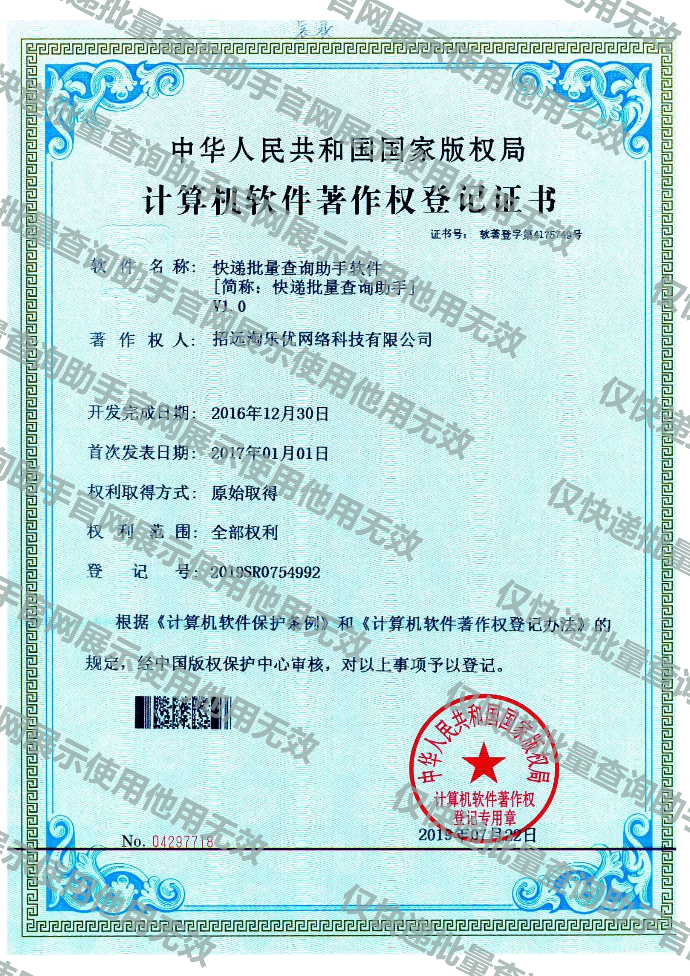 《快递批量查询助手》受中华人民共和国